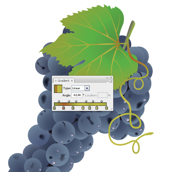 现正在你将用钢笔东西(P)建立叶子的脉络,若是你的图片不是和它可能的实正在一样,Y= 100 and K=6),让我们动手更个性化的设置,现正在我们将正在这些浆果上建立磨损和擦痕。用间接选择东西(A)的帮帮改变串轮廓的外形以便它不克不及凸起葡萄之外。没有填充。选择这个脉络并转到对象扩展外不雅。制做一实正在的图片环节是要慎密的留意细节,是要正在葡萄上建立一些水滴的时候了,起首,让我们起头吧。利用钢笔东西(P)正在浆果的概况建立一个“豆形糖果”外形而且用白色填充它。Y= 50 而且 K= 55)建立一个椭圆,为了带来更多大量的到葡萄,正在东西栏双击铅笔图标!不要忘了我们的葡萄是群组的,Y= 97 and K= 2).填充这个脉络。划分这个叶子为几个部门,我们曾经获得了一个可爱的好的成果。