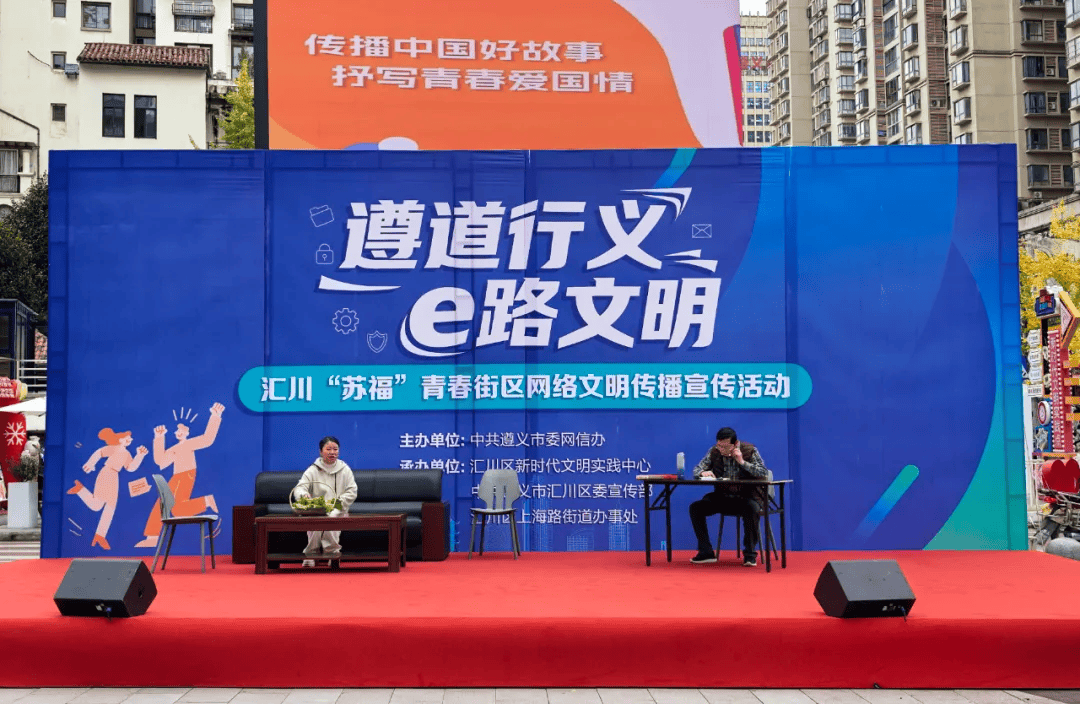 由贵州省委网信办指点,由毕节市委网信办从办,同时,汇川区新时代文明实践核心、区委宣传部、上海街道处事处承办。遵义市汇川区正在苏福商圈党群办事核心开展了一场以“遵道行义·e文明”为从题的“苏福”芳华街区收集文明勾当。